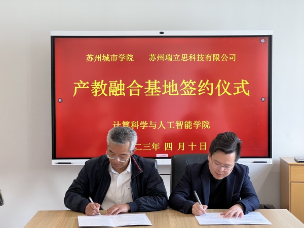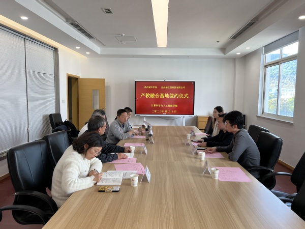 为进一步深化产教融合,不断推动校企合作,4月11日计算科学与人工智能学院在综合楼312会议室,与苏州瑞立思科技有限公司举行产教融合基地签约仪式。苏州瑞立思科技有限公司总经理冯杰、技术总监李嘉伟,学校教务处黄新、孔荣,计算科学与人工智能学院副院长凌兴宏和相关专业教师参加签约,仪式由凌兴宏主持。