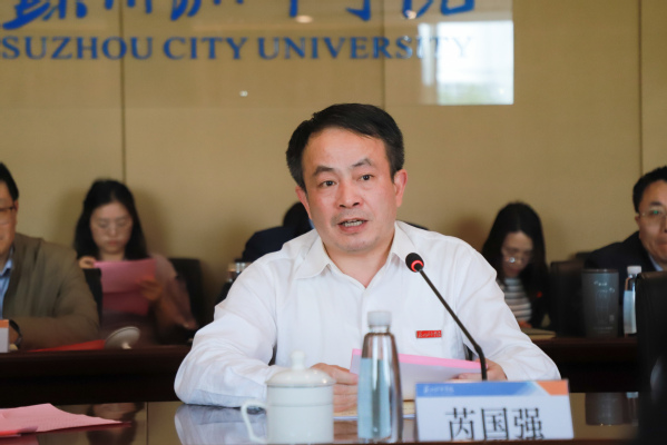 芮国强对省纪委监委十一室、苏州市纪委监委领导的调研指导表示欢迎与感谢。他介绍了苏州城市学院的发展历程和学校领导班子组成情况,并对我校纪检监察机构设置、人员配备等方面情况进行简要陈述,强调指出高校是培养堪当民族复兴大任时代新人的重要阵地,必须坚持用习近平新时代中国特色社会主义思想统领高校一切工作,全面贯彻落实党的二十大精神,深刻把握全面从严治党战略部署,认真落实构建全面从严治党体系任务要求,深入开展党风廉政建设和反腐败斗争,为营造风清气正的政治生态和校园环境提供坚强保障。他表示,今年是学校平稳完成转设工作的关键之年,也是转型提升的重要阶段,期望专家组对如何进一步做好市属高校纪检监察工作能够给与很好的指导,推动学校纪检监察工作取得更大治理效能。
