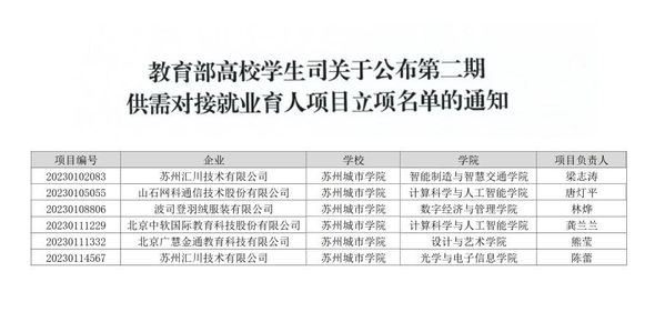 近期,在教育部高校学生司发布的《教育部学生司关于公布第二期供需对接育人项目立项名单的通知》上,我校申报项目全部获批,共有五项就业实习基地项目和一项定向人才培养培训项目成功立项。