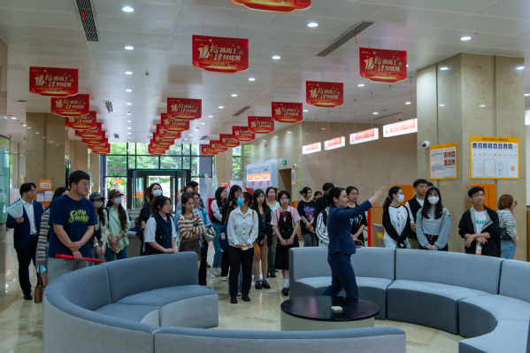 宁波银行苏州分行工作人员带领同学们参观了分行营业部,向同学们介绍了银行日常业务开展情况,同学们实地感受了银行企业文化及工作环境。