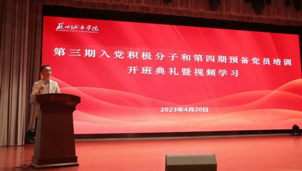 4月20日下午,我校在综合楼三楼多功能厅举行第三期入党积极分子和第四期预备党员培训开班典礼暨视频学习。全体学员集中观看了中共湖北省宣讲团成员、华中科技大学马克思主义学院教授、博士生导师杜志章所作的《以中国式现代化全面推进中华民族伟大复兴——党的二十大精神解读》报告。会议由党校副校长陈波主持。