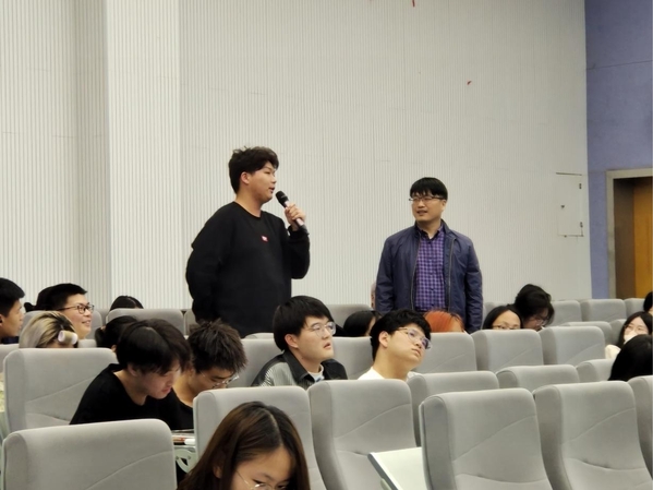 “人生之路并不是一帆风顺,会经历许多至暗时刻,最重要的是走出舒适区,不抱怨世界和他人,沉下心来。”讲座最后,王鹤松为我们带来我院2011级英语专业毕业生姚舜分享给所有学弟学妹们的一段话。在场的同学们深受鼓舞,活动现场气氛热烈。