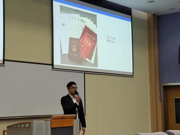 王鹤松围绕自己的学习、求职和备考雅思的经验出发,建议大家苦练口语写作,增强实战演练。在面对“双非的学生如何在求职过程脱颖而出?”这类问题时,王鹤松用自己面试成功的经历鼓励同学们,抓住每一次学习的机遇,结局不会辜负每一个努力的人,他给大家提出两点建议:一是不要过分焦虑,要对自己的能力有自信;二是沉下心来,做好自己。