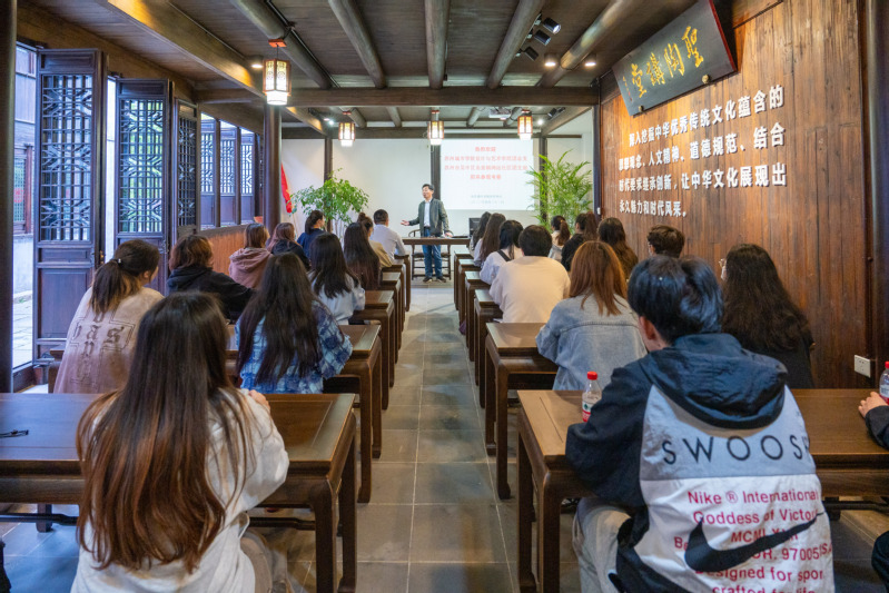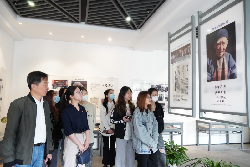 接着,大家前往甪直镇叶圣陶研究中心参观学习。研究中心周明森老师为大家讲授主题团课,他向大家介绍叶圣陶先生的生平、一生所取得的成就以及在中国现代教育领域做出的突出贡献,通过这些经历、实践和感悟勉励大家要像叶圣陶先生那样做人、处事、爱家国。