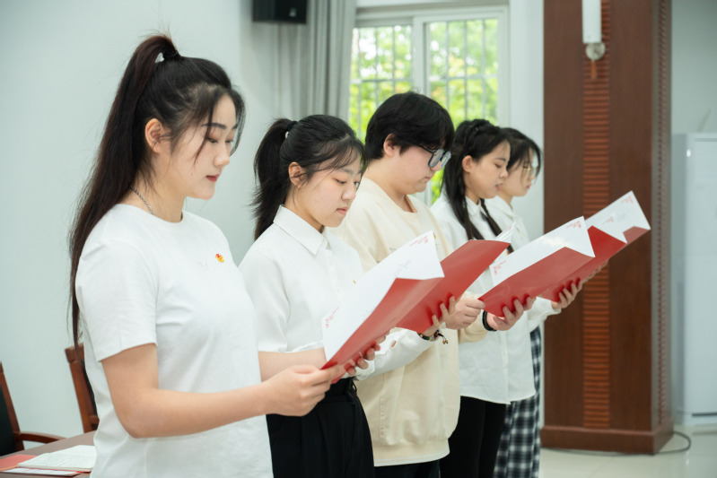 签约仪式后,团员代表朗诵李大钊《青春》选段,献礼“五四”,希望大家能以“青春”之我,奋斗“青春”之国家。在团员代表2022级航空服务艺术与管理杨延雪的带领下,大家集体重温入团誓词。