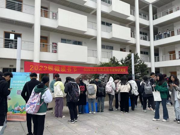 为了进一步满足读者多样化、多层次、多方面的文化需求,深入推动全民阅读,大力营造书香校园氛围,4月24日上午,图书馆联合北京人天书店集团股份有限公司在4号教学楼前举办读书节系列活动之校园书展与图书馆知识问答。本次活动受到全体读者的热烈欢迎和积极参与,现场参与的读者络绎不绝。据统计,此次书展共展出各类型图书近千种,收集读者荐购图书信息近三百条。