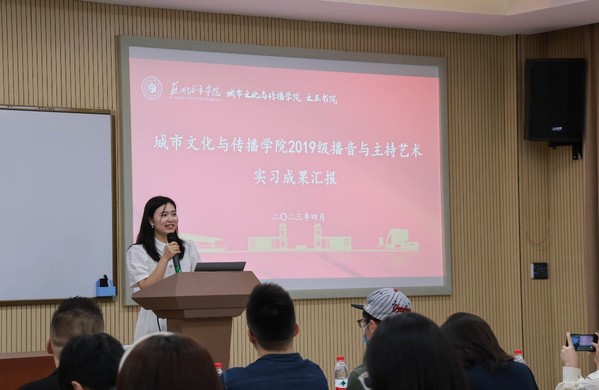 第二部分的实习成果总结会,由播音与主持艺术专业教师丁璨主持。