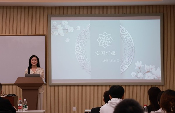 汇报会由两个部分组成:毕业实习答辩和成果总结。首先是第一阶段的毕业实习答辩汇报会,2019级播音与主持艺术专业25位学生,围绕23周的实习实践课程,结合实习心得、实习成果进行汇报答辩。