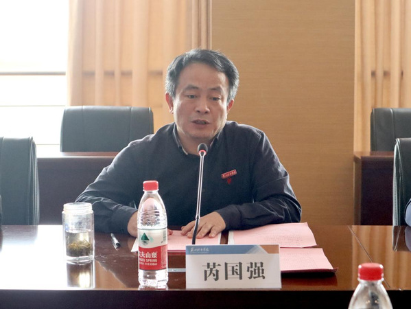 芮国强进行总结讲话,他强调切实加强学生社团的建设管理是在加快构建高校思想政治工作体系的时代背景下一项十分重要的工作。学校党委一直以来高度重视学生社团的建设发展和作用发挥,希望通过本次调研会,深入学生社团工作实际,了解当前学生社团工作的现状和遇到的问题。他对学生社团前期工作给与充分肯定,同时对社团工作提出三点意见:一是要进一步统一思想、提高站位,深刻领会社团工作的重要意义;二是要稳步推进以学生为中心,在目标导向和问题导向的牵引下,实现学生社团的高质量发展;三是要健全体制,规范机制,加强联动,形成推动学生社团高质量发展的工作格局。