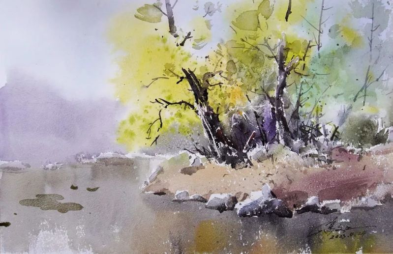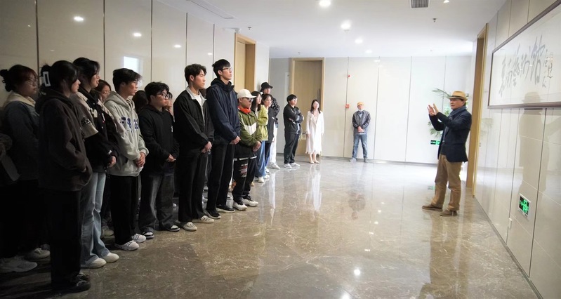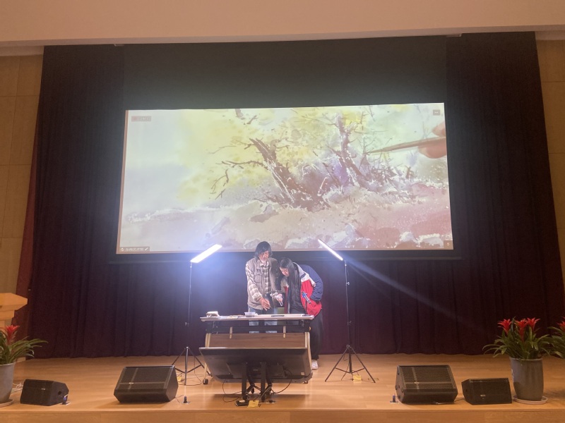 葛文江亲自带领师生参观了他的画作,在他的讲解下,学生感受到了中国的大好河川,感受到了新疆的炙热,以及四季的魅力。葛文江向学生现场示范水彩风景,深入细致地讲授自己的水彩技巧,从大格局到小细节倾囊相授。