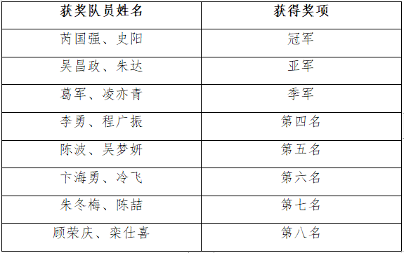 本次比赛采用中国羽协最新《羽毛球竞赛规则》,分两个阶段进行,第一阶段是小组循环赛,决出前两名进入第二阶段;第二阶段为淘汰赛,决出前八名。经过激烈角逐,芮国强、史阳荣膺桂冠,吴昌政、朱达获得亚军,葛军、凌亦青季军。