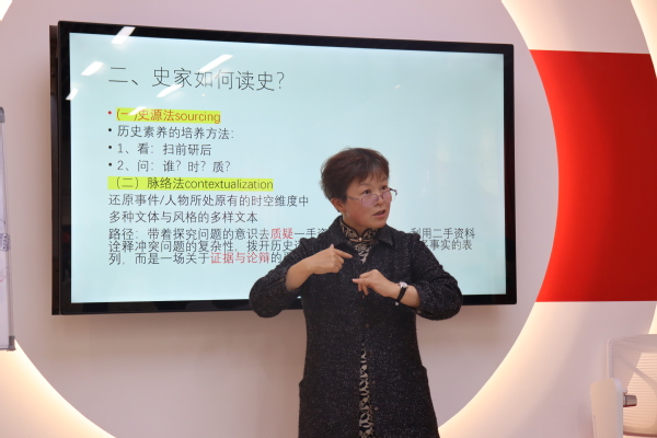 李颖老师作《像史家一般阅读——以<复兴文库>为例》专题报告。她详细论述了像史学家一样阅读的原因和重要性,并阐述了史源法和脉络法两种阅读方法,勉励同学们一定要对照现实,提高自己的判断力、警觉力、凝聚力。