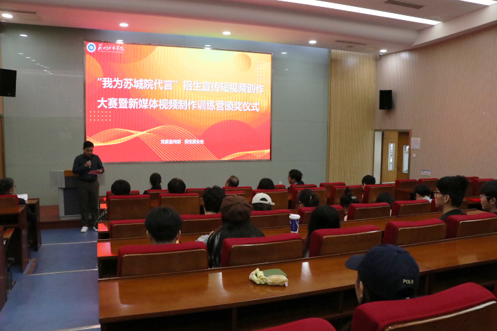 5月11日,由我校党委宣传部和招生就业处联合举办的首届“我为苏城院代言”招生宣传短视频创作大赛暨新媒体视频制作训练营颁奖仪式在3号教学楼顺利举办。我校党委常委、党委宣传部部长仲宏、招生就业处副处长宋丹、城市文化与传播学院教师薛俊恺、党委宣传部综合科科长徐汝华以及在本次比赛中的获奖代表和广大师生参加了本次活动。