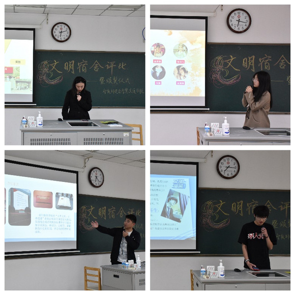 经过前期建设、中期检查及最终审核,我院共有31个宿舍参与本次评选。在评选过程中,各宿舍代表从思想建设、学习建设、文化建设、遵规守纪、内务卫生等方面,展示宿舍风采以及健康、向上、文明的寝室文化。