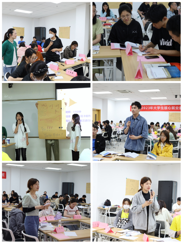 六位老师采用视频引入、小组讨论、心得分享、现场模拟等形式多样的教学方式,理论知识联系职场实际,着力提升学生的思维能力、自我管理、创新能力、沟通能力与实践能力。小组讨论环节,同学们运用课上学到的知识,围绕专题模块的重点问题,深入思考、热烈讨论、踊跃回答,充分展现团队和个人的风采。