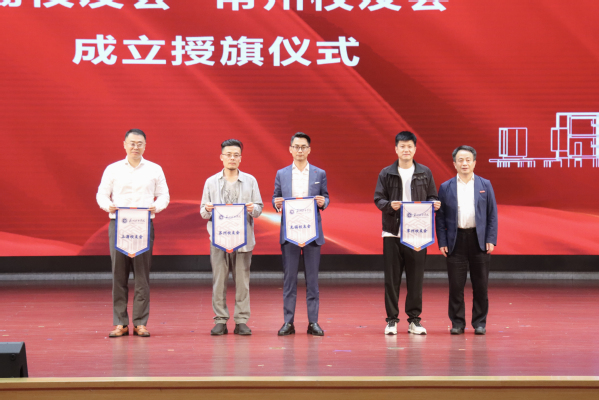 芮国强为校友分会授旗,苏州校友分会副会长99级校友苏秋、上海校友分会会长99级校友王立、无锡校友分会会长99级校友朱磊磊、常州校友分会副会长99级校友黄威上台领旗。校友分会的成立使校友拥有了更好的交流信息、资源共享、联络感情的平台,各校友分会将以感情为纽带,以活动为载体,以合作交流为渠道,不断加强校友之间、校友与学校之间的联系,通过扎实的服务,为校友事业发展推波助澜,使校友分会真正成为校友的温暖港湾和温馨家园。