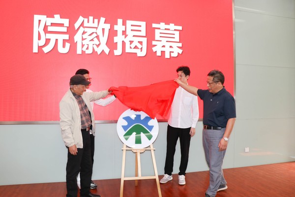 在热烈的掌声中,钱伟超、马路及学生代表胡涵、葛夕畅共同为院徽进行揭幕。