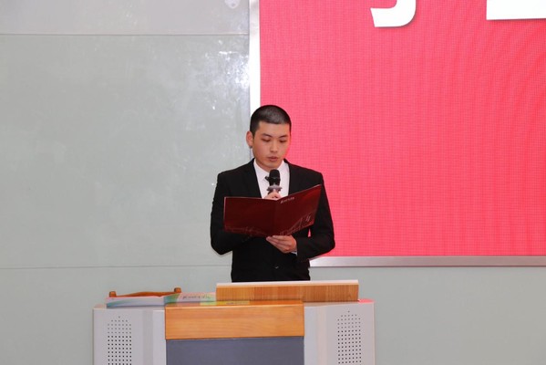 2020级车辆工程专业学生代表袁彦泽发言,他分享了经历学校转设、学院成立以来的切身感受。院徽代表着学院开启发展新阶段,作为学生,他将牢记我校“文者文章,正者道德”的校训,秉持求学的至简之心,在求学路上不断突破,塑造完整的人格,夯实做人的品德,在新时代的建设中发光发热。