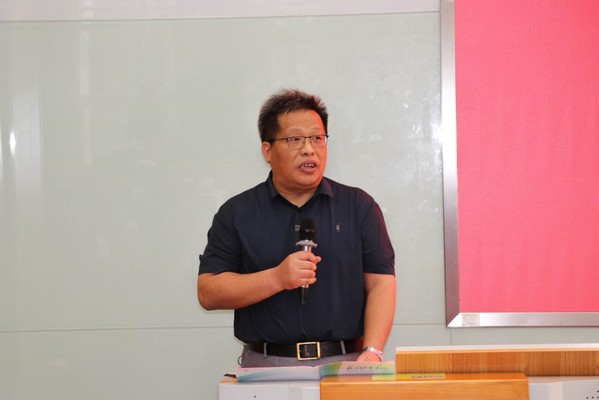 钱伟超代表学院致辞,他首先对设计与艺术学院负责人马路老师和院徽设计者沈致中老师的大力支持表示感谢,报告了建院以来学院各项工作取得的成绩。院徽彰显了学院办学理念和内涵,进一步增强了学院的品牌度、凝聚力和归属感,也意味着新使命和新担当。学院正处于新的历史起点和二次创业的关键期,他对制交师生们提出三点希望:明规矩,守底线;勤学习、善思考;崇奋斗,勇创新,学院的高质量发展新蓝图需要制交人来共同描绘。