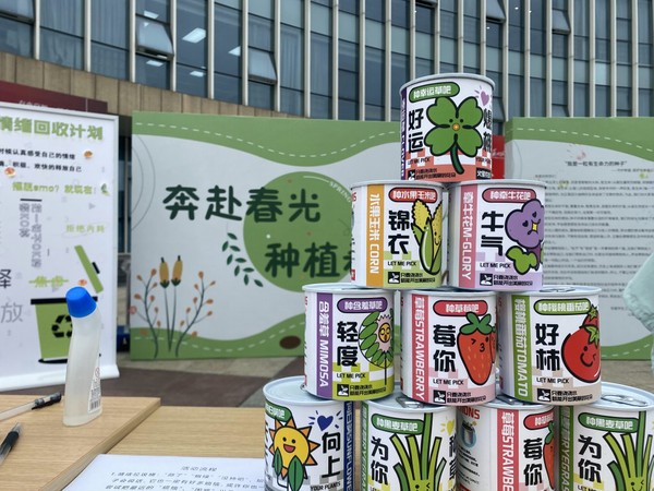 活动现场,同学们在工作人员的引导下,在“不可回收垃圾桶”中倾泻自己的情绪;在“未来展望树”上描绘对未来的期望;在“我是一颗有生命力的种子—守护希望,爱护生命”倡议书上印上手印,许下生命之约。在打卡上述环节后,同学们可获得“种子盲盒”自行开展“播种希望”活动。