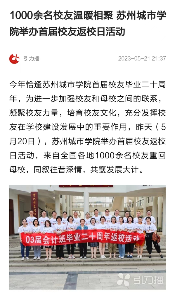 今年恰逢苏州城市学院首届校友毕业二十周年,为进一步加强校友和母校之间的联系,凝聚校友力量,培育校友文化,充分发挥校友在学校建设发展中的重要作用,昨天(5月20日),苏州城市学院举办首届校友返校日活动,来自全国各地1000余名校友重回母校,同叙往昔深情,共襄发展大计。