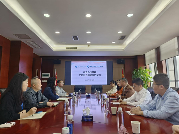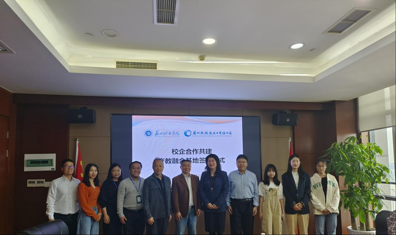 在交流座谈环节,双方围绕实习实训、人才培养、就业实习等方面开展讨论。双方共同表示将在专业教学、人才培养和实习实践等领域开展进一步的交流合作。随后,孙少华代表学院与苏州恒润进出口有限公司进行产教融合基地签约。