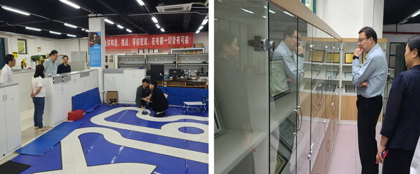 赵志宏全面走访调研了三创学院,参观了包括一楼的翠微创客创业项目孵化园、二三楼的创客空间以及新工科实践教育中心等场地。顾荣庆就目前学校三创工作开展状况、取得的成效以及转设阶段学校三创工作开展过程中遇到的问题与困境做了汇报。