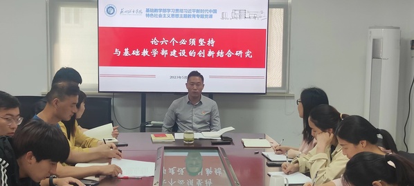 为推动学习贯彻习近平新时代中国特色社会主义思想主题教育走深走实,5月23日上午,基础教学部党委书记、主任李勇按照校党委主题教育统一安排,以“论六个必须坚持与基础教学部建设的创新结合研究”为题,为全体教职工上了一堂立意深远、思想深刻的专题党课。