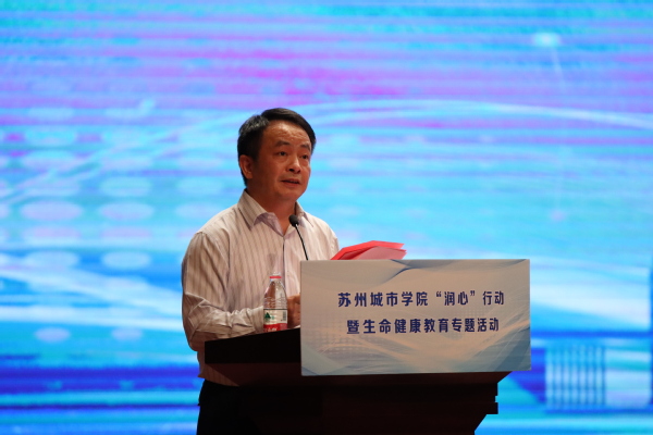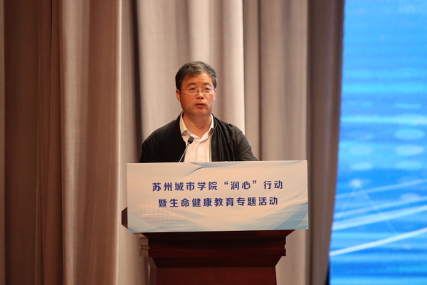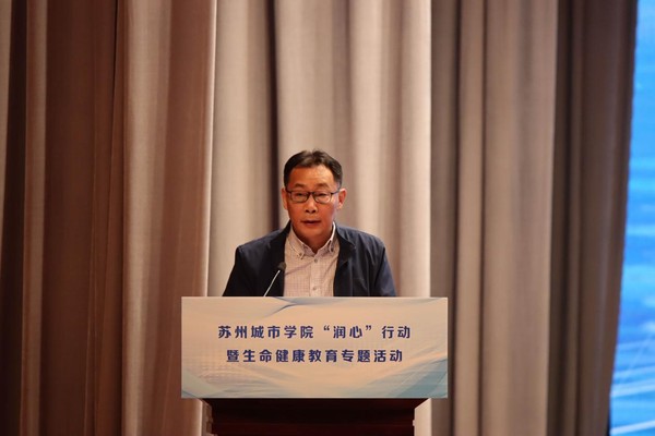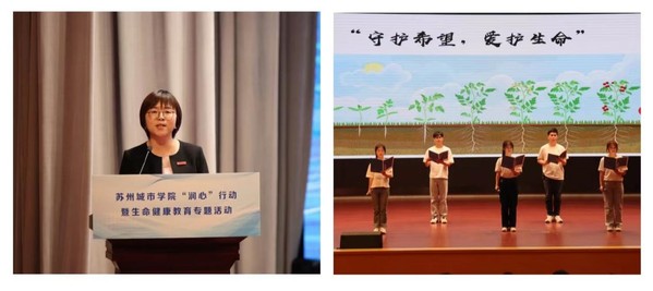 芮国强和刘文伟共同开启苏州城市学院“润心”行动暨生命健康教育专题活动的序幕。祁素萍宣布我校“润心”行动暨生命健康教育专题活动正式启动,她在主持中表示,学校将以此为契机,从组织管理、能力培养、协同联动、生态建设四个方面出发,分步骤,有重点推进各项工作落实到位,以“多方携手,协同育人,共筑成长”为理念,探索“大心理”育人模式,为广大学生的心理健康成长保驾护航。仪式上,学生代表发起“守护希望,爱护生命”倡议。