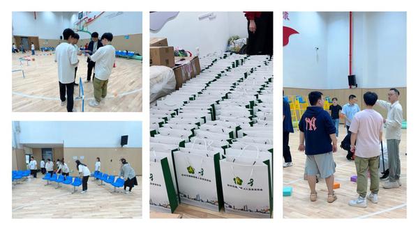 参与本次运动会的志愿者是来自我院学生第一、第二党支部的学生党员。为保证本次运动会顺利进行,学生党员志愿者们于运动会的前一天便前往阳光文体活动中心比赛场地接受培训。在老师的悉心指导下,志愿者们有条不紊地布置场地、测试比赛道具、分装伴手礼,引导员们也提前预演了多遍活动流程,只为在正式比赛时能够呈现出最佳的活动效果。