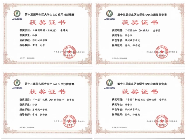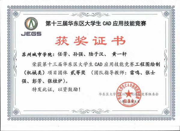 在学院领导的关心和组织下、在实验与实习管理中心(新工科实践教育中心)的大力支持下、在带队老师雷鸣和各组指导老师的悉心指导下,经过半年的充分准备和紧张集训,同学们充分展示自己的专业技能和创新水平,在“工程图绘制(机械类)”竞赛中,我院陆子汉、孙强同学分别获一等奖,任芳、孙强、陆子汉、黄一轩同学获团体二等奖;在“中望机械CAD创新设计”竞赛中,陆子汉、孙强同学分别获一等奖。