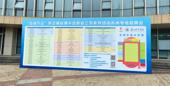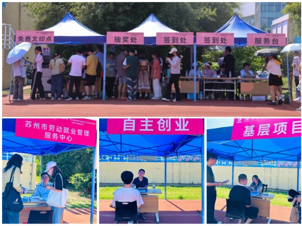 为落实党中央、国务院稳就业决策部署和“两个毫不动摇”方针,贯彻习近平总书记关于“民企高校携手促就业行动”的重要指示精神,大力推进“逐梦新时代 建功新征程”江苏省2023届高校毕业生就业行动和“创响江苏”主题系列活动,助力民营经济高质量发展和高校毕业生高质量充分就业,“百城万企”民企高校携手促就业江苏系列活动苏州专场招聘会于5月28日在我校田径场成功举办。本场招聘会由江苏省工商业联合会、江苏省教育厅、江苏省人力资源和社会保障厅主办,江苏省高校招生就业指导服务中心、江苏省劳动就业管理中心与苏州城市学院共同承办。