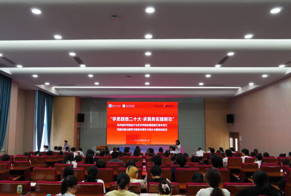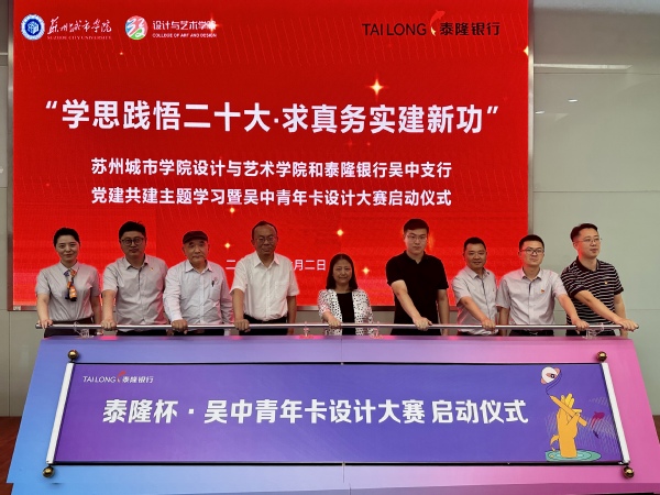为深入开展学习贯彻习近平新时代中国特色社会主义思想主题教育,推动二级学院应用型人才培养高质量发展,设计与艺术学院积极联系泰隆银行吴中支行,开展党建共建系列主题活动,6月2日下午,由设计与艺术学院党委主办,设计与艺术学院第一、第二党支部承办的“学思践悟二十大·求真务实建新功”党建共建主题学习暨吴中青年卡设计大赛启动仪式在教学楼3-101举行。吴中区地方金融监督管理局副局长尹旭青、吴中区团委副书记章易、苏州大学商学院副教授沈健、泰隆银行苏州吴中支行行长葛宇杰、泰隆银行苏州木渎支行行长李锐、泰隆银行苏州甪直支行行长瞿卫锋、泰隆银行苏州吴中支行副行长王峥嵘、泰隆银行东山小微支行行长尚化祥、我校设计与艺术学院负责人马路、设计与艺术学院党委副书记丁良超出席本次活动,泰隆银行党员代表、我校设计与艺术学院、数字经济与管理学院师生代表参加活动。启动仪式由设计与艺术学院综合办何玉主持。