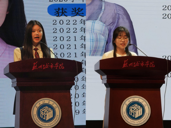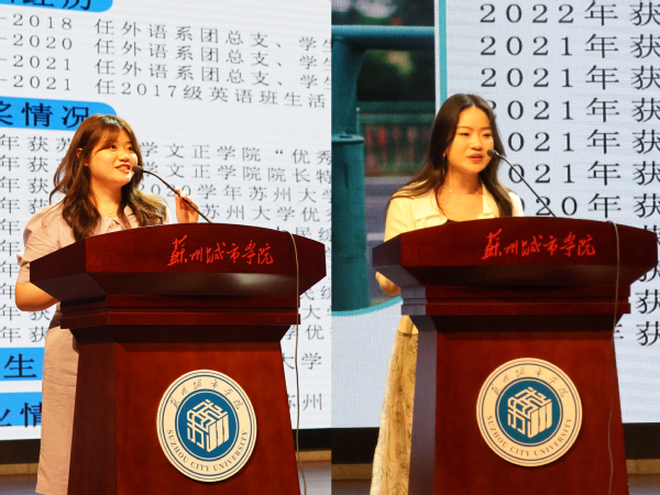城市文化与传播学院2023届毕业生代表施陈佳仪和徐晓雨在发言中回忆了大学四年求学的美好时光,分享了成长与收获,表示不管学子身在何处,从事何种岗位,都会将“文者文章,正者道德”的校训融入其中。以青春奋斗之笔,书写时代华章;以青春奋斗之力,奏响苏城强音。