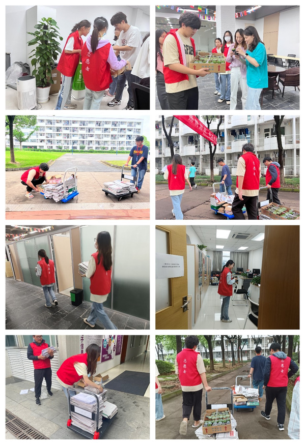 志愿者们前往综合楼、尊师楼、师生服务大厅、学生活动中心等处收集废纸、塑料等可回收物品。为鼓励师生减少使用一次性塑料制品,促进循环使用,践行绿色生活,志愿者们还为捐赠废旧物品的师生赠送绿植,共建清洁美丽校园。