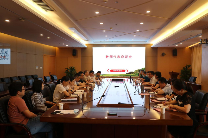 为进一步开展学习贯彻习近平新时代中国特色社会主义思想主题教育,深入开展调查研究,详细了解我校教职工在工作、学习、生活中遇到的困难与问题,广泛听取教职工对学校高质量发展的建议和意见,切实解决教职工的急难愁盼问题,推动主题教育走深走实,6月1日,我校于综合楼三楼会议室分别召开管理人员、教师代表座谈会。校党委书记芮国强,党委组织部、人事处(党委教师工作部)、教务处、学科建设与科研工作处、国有资产与财务管理处、工会等相关部门负责人,各职能部门及二级学院管理人员、教师代表参会。