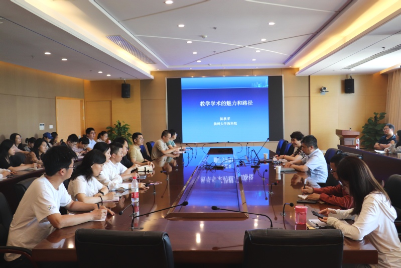 百年大计,教育为本,教育大计,教师为本。为贯彻落实习近平总书记在中共中央政治局第五次集体学习时的重要讲话精神,进一步加强学校师德师风建设,全面提高师德素养,增强教师教书育人的责任感和使命感,教育引导广大教师争做“四有”好老师,当好学生引路人,6月9日,作为学习贯彻习近平新时代中国特色社会主义思想主题教育的重要内容,我校中青年教师深入学习党的二十大精神,“修师德、强师能、铸师魂”系列活动邀请了全国教育学类教育指导委员会委员、江苏省人民政府教育督导、扬州大学教育科学学院博士生导师陈秋苹教授作《教学学术的魅力和路径》的专题辅导报告。