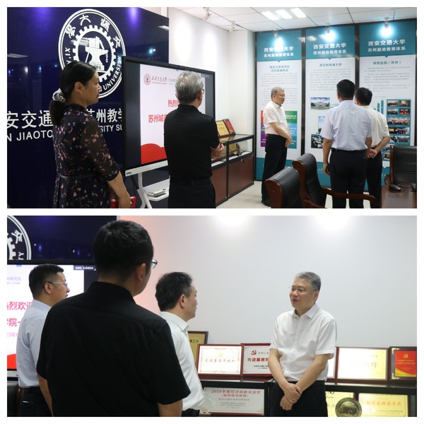 会前,芮国强一行参观了西安交通大学苏州研究院展厅,详细了解了研究院的发展历程,在中外合作办学、教育培训、科学研究、科技成果转化等方面的成功经验。