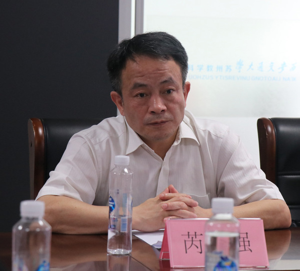 参观结束后,双方举行了座谈交流。芮国强以文正学院的办学历史与城市学院的改革之路为切入点,紧紧围绕苏州城市学院“十四五”事业发展规划和“平稳转设、顺利转型、质量提升”三重任务,希望双方以此合作为契机,围绕人才培养与引进、载体共建与运营、科学研究与产业孵化等方面开展积极合作,助力我校努力实现应用型高校的高质量发展目标。