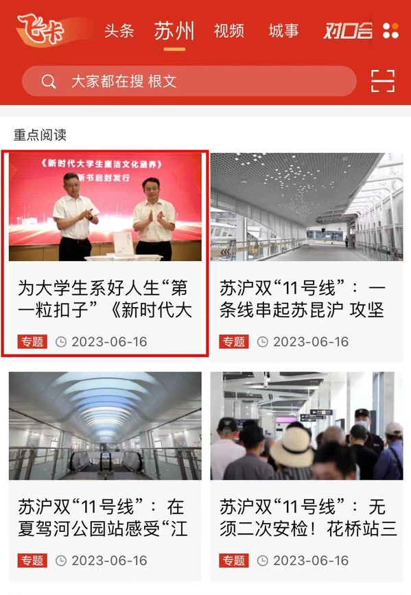 刚刚(6月16日),《新时代大学生廉洁文化涵养》启封首发,将于今年秋学期走进苏州高校课堂。苏州城市学院倡议,成立在苏州高校大学生廉洁社团联盟。苏州市委常委、市纪委书记、市监委主任刘乐明出席活动并讲话。