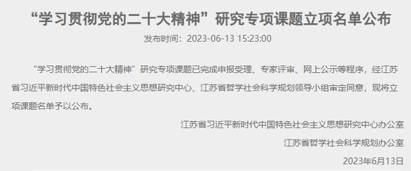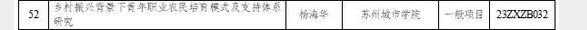 近日,江苏省习近平新时代中国特色社会主义思想研究中心办公室和江苏省哲学社会科学规划办公室公布“学习贯彻党的二十大精神”研究专项课题立项名单,我校杨海华老师申报的“乡村振兴背景下青年职业农民培育模式及支持体系研究”喜获立项,这也是我校转设以来首次获立省社科基金项目。