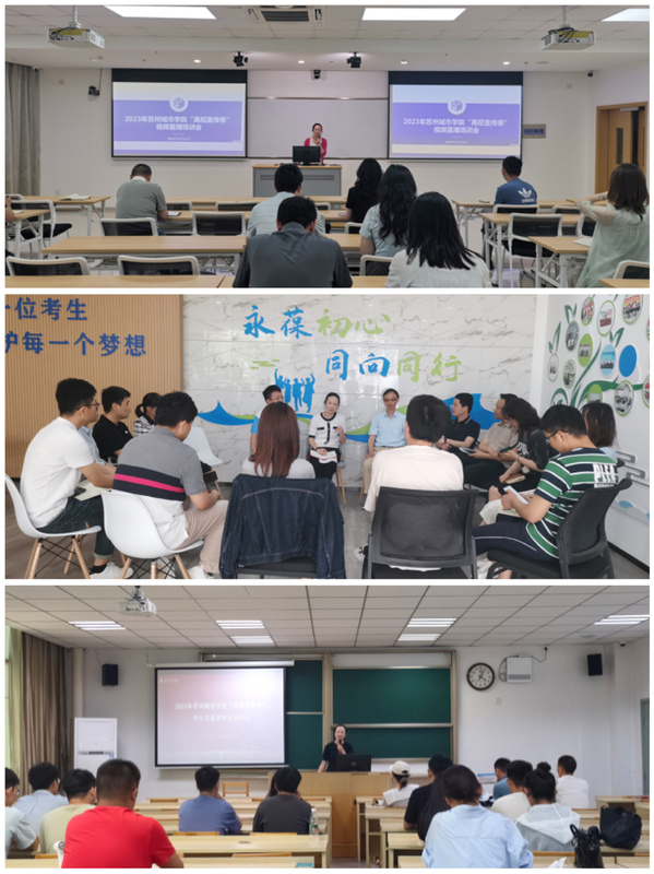 宋丹结合当前招生工作面临的形势和任务,围绕学校招生政策的变化提出2023年招生宣传工作的重点和难点。为做好今年的招生宣传工作,招生就业处协调完成校内直播场地建设,并在前期开展了直播人员、各地市招生组组长和招生志愿者三场次的培训。她指出无论是线上直播宣讲还是线下外出宣传,都要热情服务,宣讲到位,通力协作,保障安全,并号召全体招生宣传工作人员不负重托、使命必达。