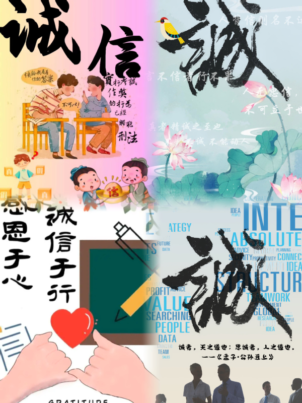 为进一步提升大学生资助诚信意识,筑牢诚信底线,计算科学与人工智能学院、智能制造与智慧交通学院于6月开展了诚信教育主题海报设计征集活动,全校学生踊跃参与,本次征集活动使同学们切身感受到资助诚信的重要性,将诚信教育内化于心、外化于行,引导学生树立以诚立身的观念,号召广大学生知诚信、讲信用、重承诺,弘扬新时代正能量,积极投身诚信实践。