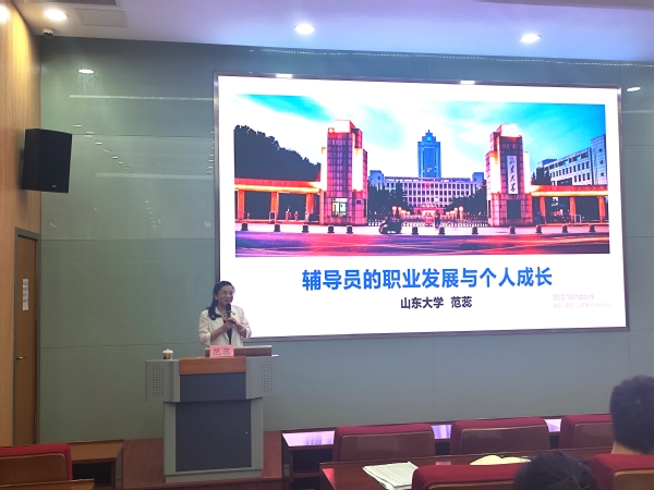 范蕊老师曾获2017年全国高校辅导员年度人物、2019年全国最美高校辅导员,是山东省辅导员领航工作室主持人和教育部全国高校思想政治工作中青年骨干,具有丰富的高校学生工作经验。论坛现场,她以《辅导员的职业发展与个人成长》为题,从“辅导员职业发展路径与阶段”“我的成长之路”“辅导员工作的基本素养”“辅导员如何成长”四个方面介绍自己的工作经验和成长感悟,并对年轻辅导员的职业发展和个人成长给出了中肯的建议。