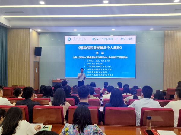 为进一步加强我校辅导员队伍建设,助推辅导员职业发展与个人成长,党委学生工作部(学生工作处)于6月30日下午在3-101教室举办辅导员工作论坛暨第二十三期学工论坛,特邀山东大学学生心理健康教育与咨询中心主任兼学工部副部长范蕊作专题报告,团委、党委学生工作部(学生工作处)全体人员以及各二级学院专职辅导员参加,论坛由党委学生工作部(学生工作处)副部(处)长卞海勇主持。