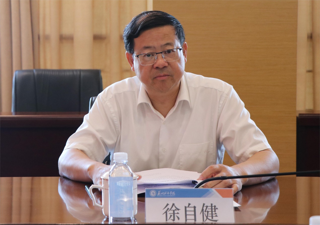 徐自健对我校的热情接待表示感谢。他表示苏州城市学院立足城市发展,定位精准,特色鲜明,希望能借此调研机会,切实了解学校在转设转型提升过程中面临的问题,凝聚共识,携手共进,继续支持学校做好各项工作,奋力推进学校事业实现高质量发展。