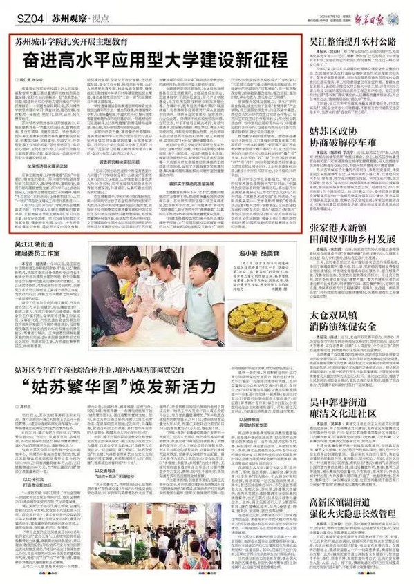 邀请奥运冠军走进校园上好大思政课、凝聚智库力量以高质量调研助推城市高质量发展、紧贴师生诉求解决一批“急难愁盼”问题、瞄准科研和办学能力提升推动产学研深度融合……主题教育开展以来,苏州城市学院坚持理论学习、调查研究、推动发展、检视整改一体推进,把学习、调研、运用、转化贯穿始终。