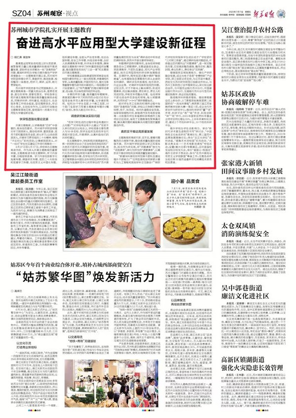 邀请奥运冠军走进校园上好大思政课、凝聚智库力量以高质量调研助推城市高质量发展、紧贴师生诉求解决一批“急难愁盼”问题、瞄准科研和办学能力提升推动产学研深度融合……主题教育开展以来,苏州城市学院坚持理论学习、调查研究、推动发展、检视整改一体推进,把学习、调研、运用、转化贯穿始终。