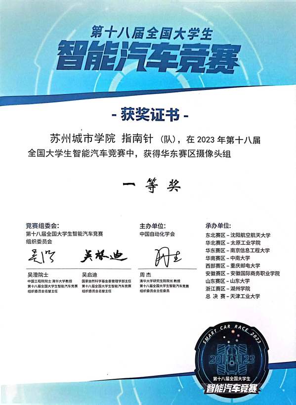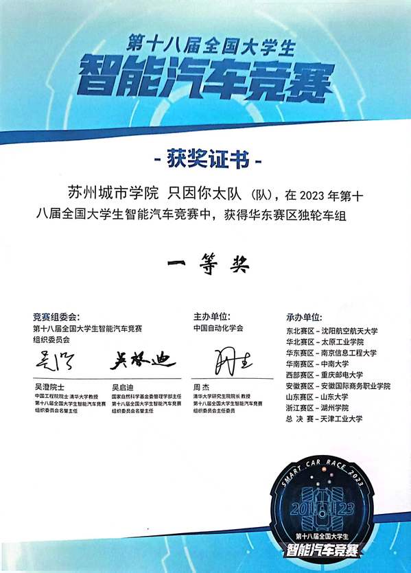 7月24至25日,第十八届全国大学生智能汽车华东赛区竞赛在南京信息工程大学举行。我校光学与电子信息学院选送两支队伍分别获得华东赛区摄像头组一等奖、华东赛区独轮车组一等奖的优异成绩。