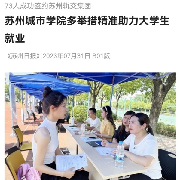 近日,苏州城市学院73名毕业生成功签约苏州市轨道交通集团有限公司,并于7月中旬全部完成入职手续,这也是该校2020年以来毕业生集体入职苏州市轨道交通集团有限公司人数最多的一次。